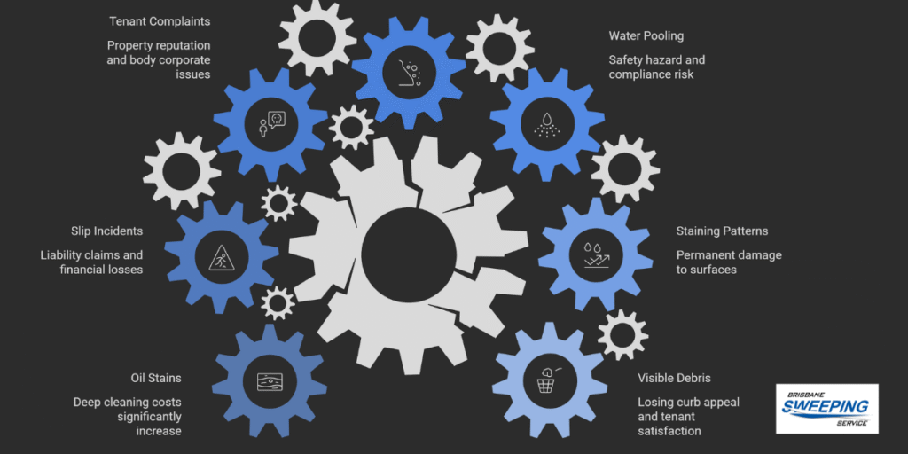 Then there’s the lost business side of things. Shoppers judge retail properties by car park appearance, and a messy one drives people away. Body corporate special levies for emergency cleaning hit everyone’s wallet hard. Slip-and-fall liability claims can run tens of thousands once lawyers get involved.